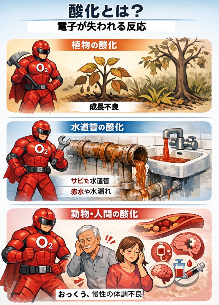 酸化とは「少しずつしかし確実に進む破壊」だと言えます。酸化に打ち勝つのが「還元」です。「電子を取り戻す事」です。