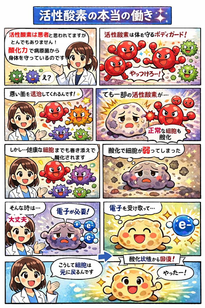 2-2:少ない量の電子だと、細胞は酸化の力に圧倒されてしまうのです